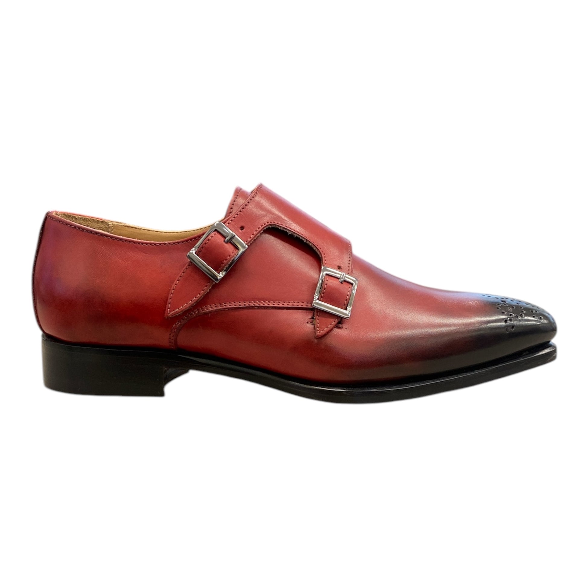 Chaussures Hommes en Cuir Rouge Bordeaux à pointe Noir.